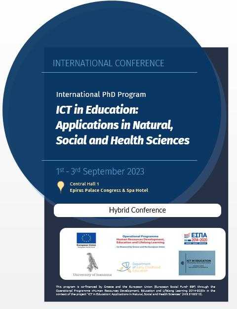 INTERNATIONAL CONFERENCE ICT in Education: Applications in Natural, Social and Health Sciences, 1st – 3rd September 2023 Central Hall 1, Epirus Palace Congress & Spa Hotel