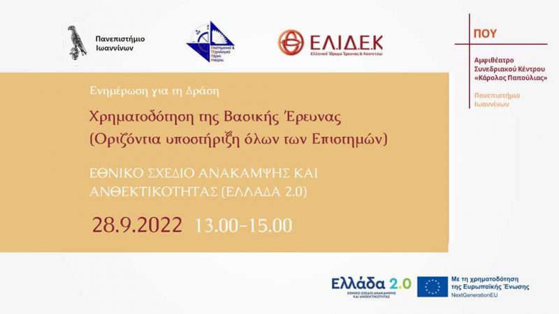 Η έκθεση έργων των επιτυχόντων στις εισιτήριες εξετάσεις του Τμήματος Εικαστικών Τεχνών και Επιστημών της Τέχνης της Σχολής Καλών Τεχνών του Πανεπιστημίου Ιωαννίνων θα πραγματοποιηθεί από την Τετάρτη 28/09/2022 έως την Παρασκευή 30/09/2022 στον χώρο του Εργαστηρίου Ζωγραφικής (ισόγειο- κτήριο Φιλοσοφικής Σχολής). Ώρες λειτουργίας της έκθεσης: 11.00π.μ. – 1.00 μ.μ. Κατά την επίσκεψη είναι απαραίτητη…