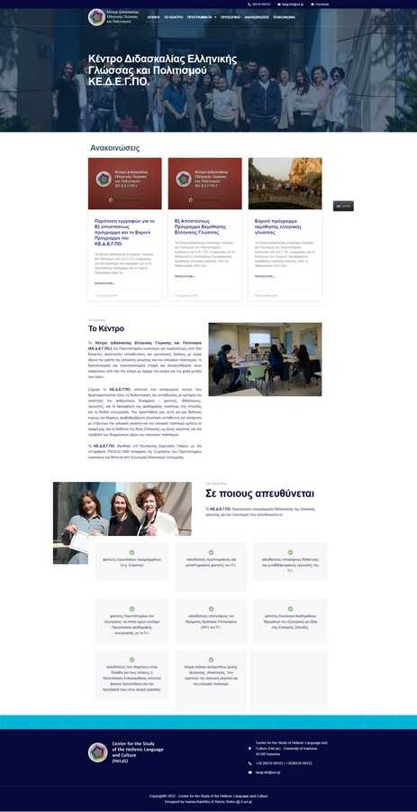 Το Κέντρο Διδασκαλίας Ελληνικής Γλώσσας και Πολιτισμού (ΚΕ.Δ.Ε.Γ.ΠΟ.) του Πανεπιστημίου Ιωαννίνων, ως αναγνωρισμένο εξεταστικό κέντρο από το Κέντρο Ελληνικής Γλώσσας (Κ.Ε.Γ.) και από το Υπουργείο Παιδείας, Έρευνας και Θρησκευμάτων, διεξάγει κάθε χρόνο εξετάσεις για την Πιστοποίηση Επάρκειας της Ελληνομάθειας υπό την αιγίδα του Κ.Ε.Γ. Τον Μάιο 2023 θα διεξαχθούν εξετάσεις για τα επίπεδα Α1, Α2, Α2 για επαγγελματικούς σκοπούς, Β1, Β2, Γ1, Γ2 στις εγκαταστάσεις του…