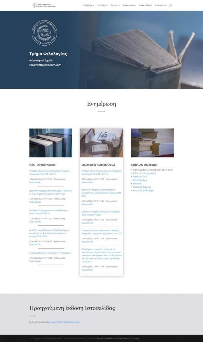 Δημιουργία νέας ιστοσελίδας του Τμήματος Φιλολογίας