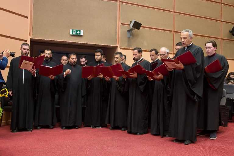Τους ύμνους απέδωσε ο βυζαντινός χορός της Κατσαρείου Σχολής Βυζαντινής & Παραδοσιακής Μουσικής της Ιεράς Μητροπόλεως Ιωαννίνων.