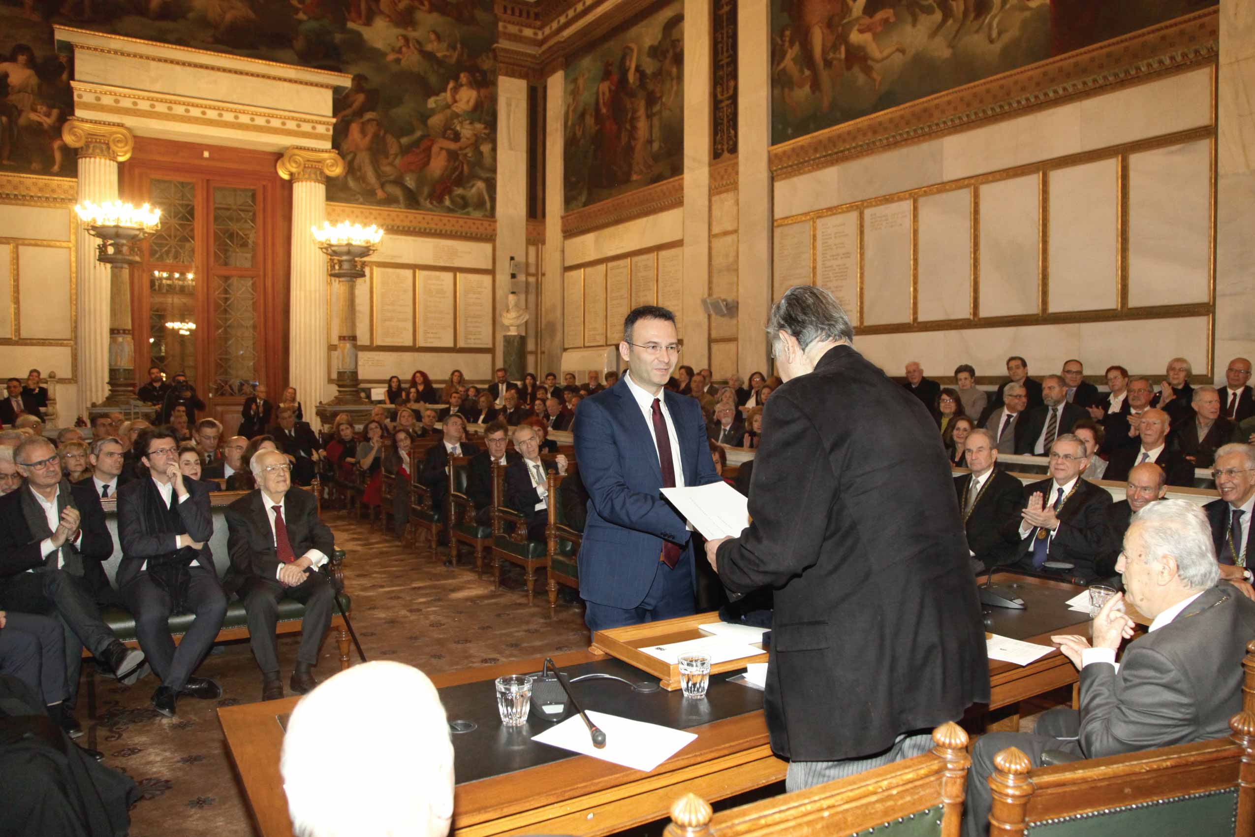 Γνωστοποιούμε ότι στο πλαίσιο της απονομής των βραβείων της Ακαδημίας Αθηνών για το έτος 2018 σε διακεκριμένους επιστήμονες και ανθρώπους των γραμμάτων και των τεχνών, που έλαβε χώρα στην ετήσια Πανηγυρική Συνεδρία του ανώτατου πνευματικού Ιδρύματος της χώρας, απονεμήθηκε στον κ. Ανδρέα Τζάκο το «Βραβείο Βασιλικής χήρας Γερασίμου Νοταρά, εις μνήμην Γεωργίου Ι. Δεμερτζή» για πρωτότυπη επιστημονική εργασία επί της θεραπείας του καρκίνου ή επί της θεραπείας των παθήσεων της καρδιάς για την εργασία «Tailoring naringenin conjugates with amplified and triple antiplatelet activity profile: Rational design, synthesis, human plasma stability and in vitro evaluation» (Biochimica et Biophysica Acta – General Subjects, 2017, 1861:2609-2618)».